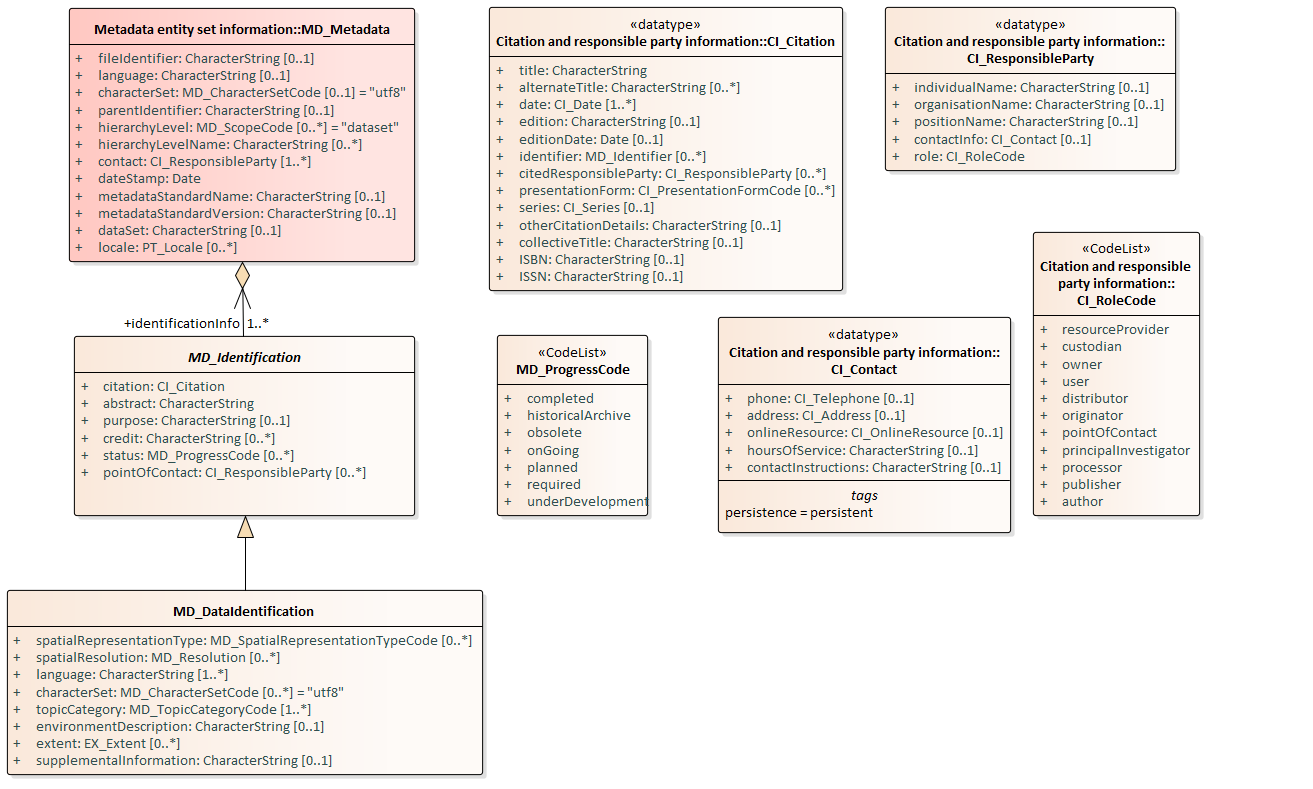 | Slightly differently modelled in the latest version of ISO 19115. |