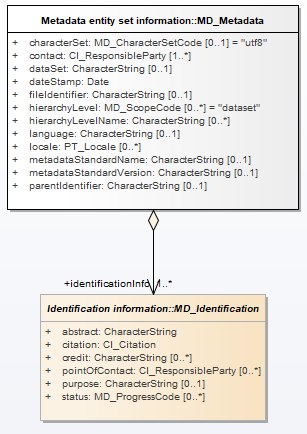 The figure below contains a snippet of the ISO 19115 standard. You can see some of the basic metadata fields covered by the standard such as contact details and citation information.
