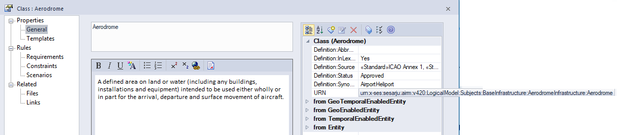 - Subjects:BaseInfrastructure:AerodromeInfrastructure. This is the subject/package structure in which the element resides.