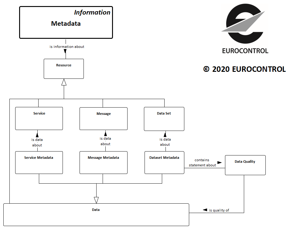 Metadata is a particular type of information about a resource. In SWIM, the notion of metadata covers among others service metadata, message metadata and data set metadata. Data set metadata includes data related metadata such as statements about data quality.