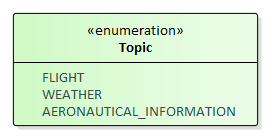 The following figure illustrates an example topic enumeration with three possible topics that classify the publications of a service according to their subject.