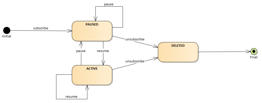 - The pause subscription operation may altogether not exist if said functionality is not needed.