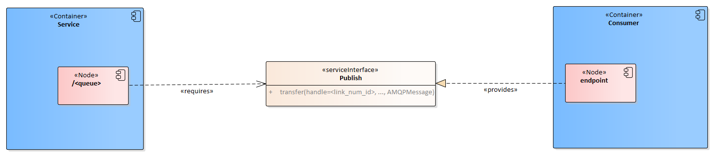 This section defines an implementation of the Publish interface of the agnostic service design using AMQP 1.0. Reference [5] provides an overview of the most important aspects of AMQP 1.0 which are used in the implementation.