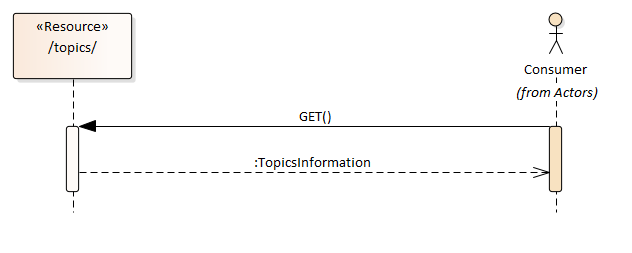 - A getTopics operation that lists the possible topics a Consumer can subscribe to,